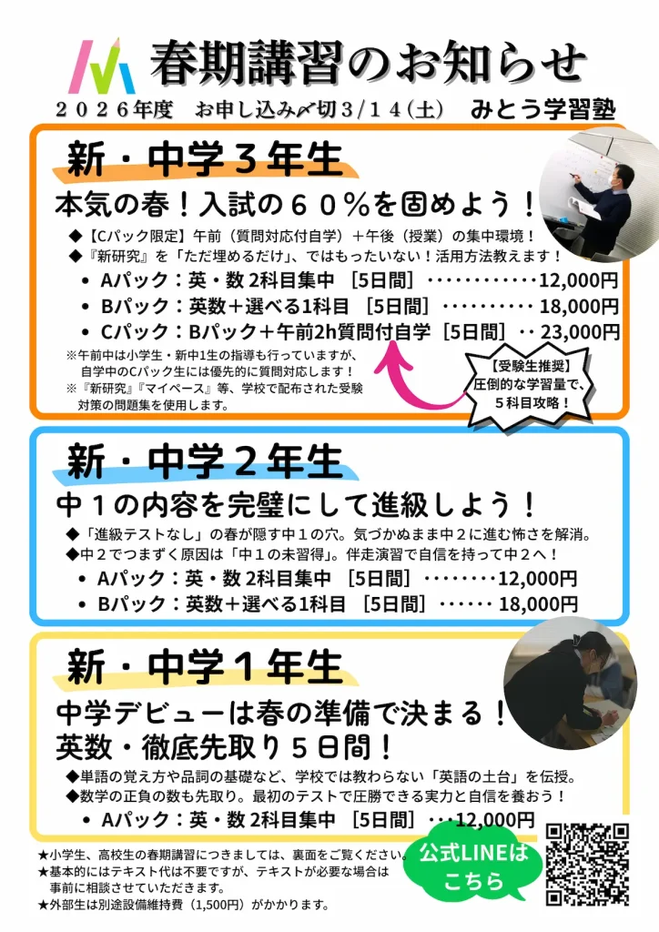🌸みとう学習塾の春期講習はここが違う!🌸